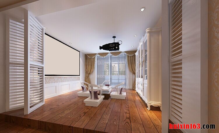这是一套简欧风格装修的案例,不管是在色彩的搭配上还是造型的设计上都完美的将简欧风格的特点展现得淋漓尽致,例如在餐厅的设计当中,所占据的空间面积并不是很大,但却显得比较充实紧凑,墙面两边都铺贴上欧式风的壁纸,以米黄色的色彩为主,演绎出一种浪漫、温馨的感觉,个性的石膏板吊顶,区域划分合理,一盏亮丽的水晶吊灯安装搭配,更是展现出一种时尚的气息,局部通过玻璃镜面进行装饰,在视觉感观上还有着一种扩大空间面积的效果,反观会客室的设计,其造型为榻榻米,空间面积显得比较宽阔,不管是与客人品茶闲聊都显得惬意无比。