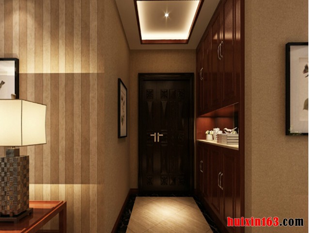 客厅中白色的石膏板吊顶加上实木的边框设计更加突出顶面装饰的立体感,中式的顶灯装饰更好的强调了装修的风格,实木的家具搭配白色的软装搭配既舒适又不缺浪漫温馨感,电视背景墙的设计采用花纹的大理石周围的实木边框更好的勾勒出立体感和中式装修的突出特点。