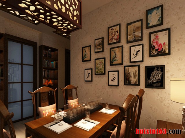 餐厅的位置就在客厅的旁边,餐厅的装饰比较明亮和具有现代时尚感气息的,实木的整体家具的搭配和实木框架的吊灯起到相互衬托的作用,墙面上一排照片墙的存在更是为餐厅的气氛营造出更多的温馨和浪漫感。