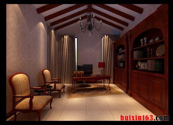 锦绣新城—227平米—别墅—欧美风情装修效果图—书房