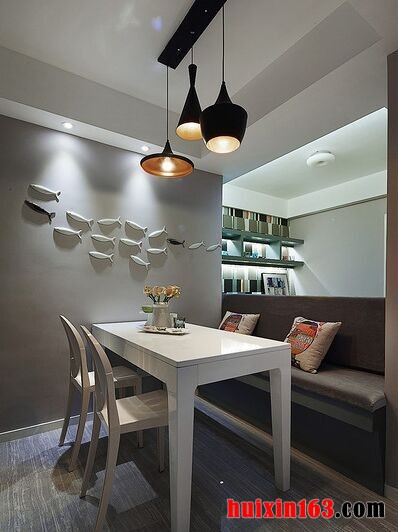 现代简约风的装修设计,不仅能大大节省居室装修的成本,而且还将时尚的氛围展现得淋漓尽致,在客厅的装饰当中,所占据的空间面积并不是很大,但通过设计师独具匠心的设计却显得比较舒适、惬意,平顶式的石膏板吊顶,没有繁琐复杂的吊顶安装,让空间少了一层束缚、多出一份灵巧,个性的电视背景墙给人一种动态感,在厨房的设计当中,空间色彩以亮色系为主,在视觉感观上显得比较干净、整齐,餐厅的设计也比较浪漫,一盏个性独特的吊灯安装,餐桌上即使没有餐具、红酒,也不失浪漫的感觉,墙面上活灵活现的小月儿装饰品,也显得比较别致。